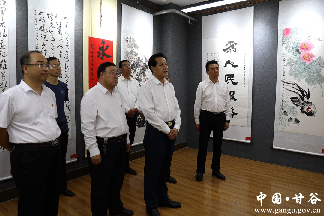 申君明参观甘谷县政协庆祝中国共产党成立100周年书画作品展