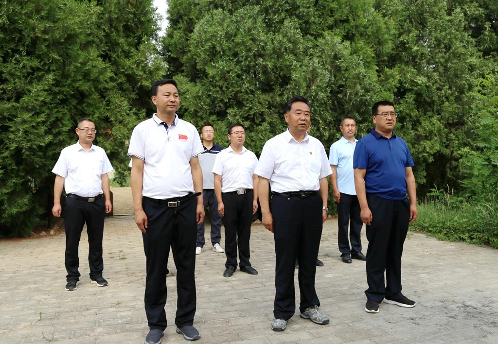 在位于洛门镇郭庄村的县级重点文物保护单位郭化如革命烈士陵园,索鸿宾带领随行人员瞻仰烈士纪念碑,向郭化如革命烈士敬献花圈,深切缅怀革命烈士的丰功伟绩。他要求,镇村和相关部门要保护好革命烈士陵园,充分发挥烈士陵园爱国主义教育基地作用,教育广大党员发扬光荣传统,赓续红色血脉,汇聚奋进磅礴力量,为建设幸福美好新武山做出积极贡献。
