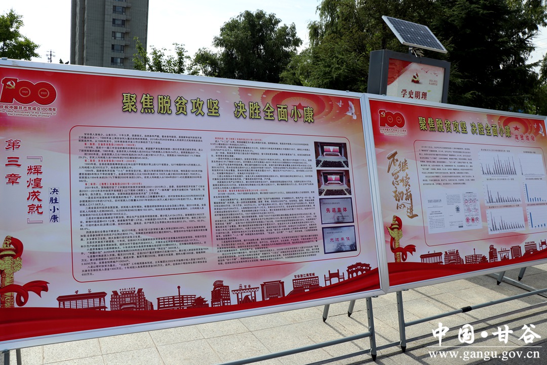 据了解,甘谷县庆祝中国共产党成立100周年成就展由中共甘谷县委宣传部主办、甘谷县发展和改革局承办,共展出展板100块,分为序言、红色记忆、党的领导、辉煌成就、绘就蓝图、结束语六个篇章,从不同角度、不同时期、不同层面,全方位、立体式展示了在党的坚强领导下,全县经济社会各项事业取得的辉煌成就、人民群众生活的崭新变化、干部群众干事创业的澎湃激情和全县人民喜迎建党百年华诞的良好精神风貌。