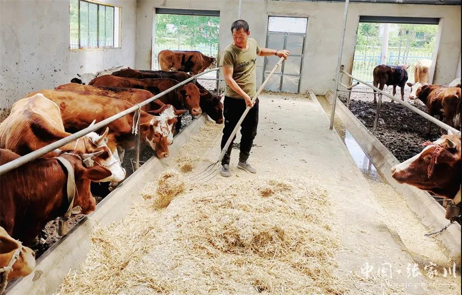 在三友村联燚养殖专业合作社,闫家乡丁河村村民马牙思正在给牛添草,他告诉记者:“家里父母年纪大了,孩子还在上学,想外出打工但又放心不下家里,听到合作社里招人,我就和媳妇一起来了,现在一天就给牛打扫个圈舍、添草、喂水,也不是太累,每月的工资还能领三千多元,既能挣钱还能照顾家里,我感觉到很满意。”
