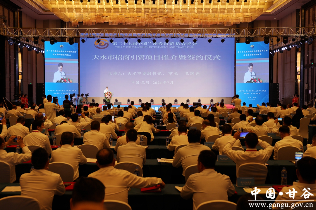 7月9日,第二十七届兰洽会天水市招商引资项目推介暨签约仪式在兰州举行。我市共签约高端装备产业园、OLED载板项目、新鸥鹏教育小镇、阳光新能源多能互补一体化生态应用项目、乡村振兴旅游项目等省外投资的合同项目58项,总投资935.13亿元。其中,甘谷县成功签约7项,总投资56.53亿元。