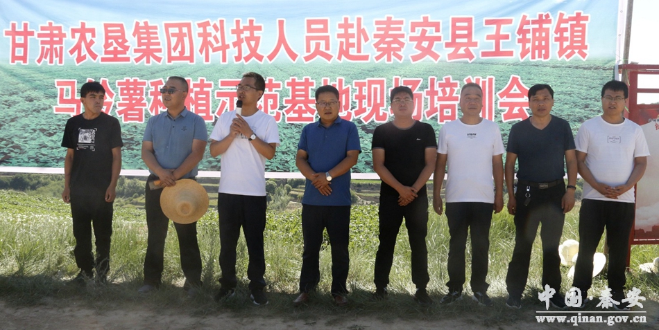 新天水讯 据秦安县融媒体中心消息 7月12日,甘肃省农垦集团技术人员来到秦安县王铺镇,开展马铃薯种植管理技术培训,全镇各村负责人,党员群众共计80余人参加了现场学习。