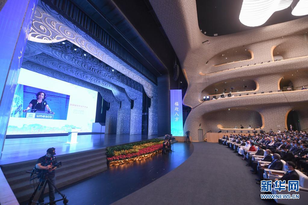 7月16日,联合国教科文组织总干事阿祖莱在开幕式上在线致辞。新华社记者 宋为伟 摄