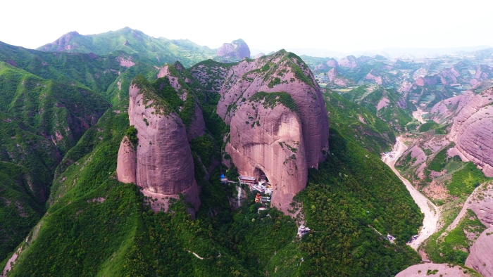 当然,适宜的气候条件也是丹霞地貌形成的重要推手。天水南部地区晚白垩世的气候比较炎热干燥,氧化反应剧烈,所以山间盆地沉积物多红色,且以钙质胶结为主,形成红层,奠定了物质基础。后期的气候演变,使本区温和湿润,四季分明,冬冷无严寒,夏热无酷暑,雨热同季,光照充裕,降雨丰沛,沟道密布,为流水切割、风化剥蚀提供了适宜的外营力条件,勾勒出“色丹若霞,高低错落”的丹霞地貌景观。