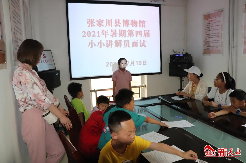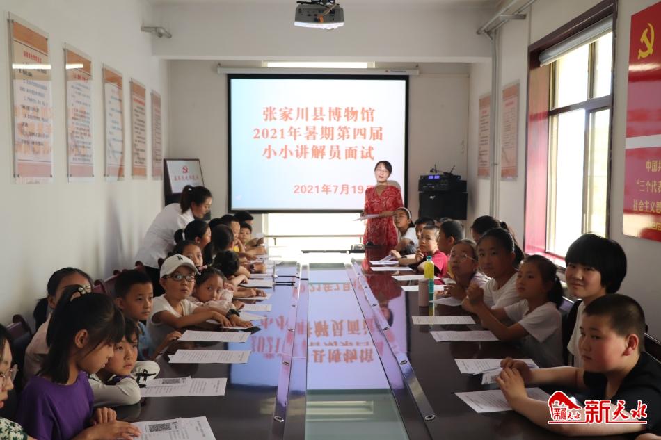 新天水讯 7月19日,张家川县博物馆2021年暑期第四届小小讲解员培训班开班,40余位小朋友准时到博物馆参加面试。本次招募活动受到社会广泛关注,报名火热,在家长的强烈要求下,博物馆综合考虑馆内实际情况和孩子们优秀的面试表现,扩招了10名学员。