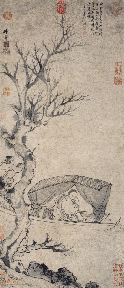 元·张渥 《雪夜访戴图》 纸本水墨 91.8×39.8cm 上海博物馆藏