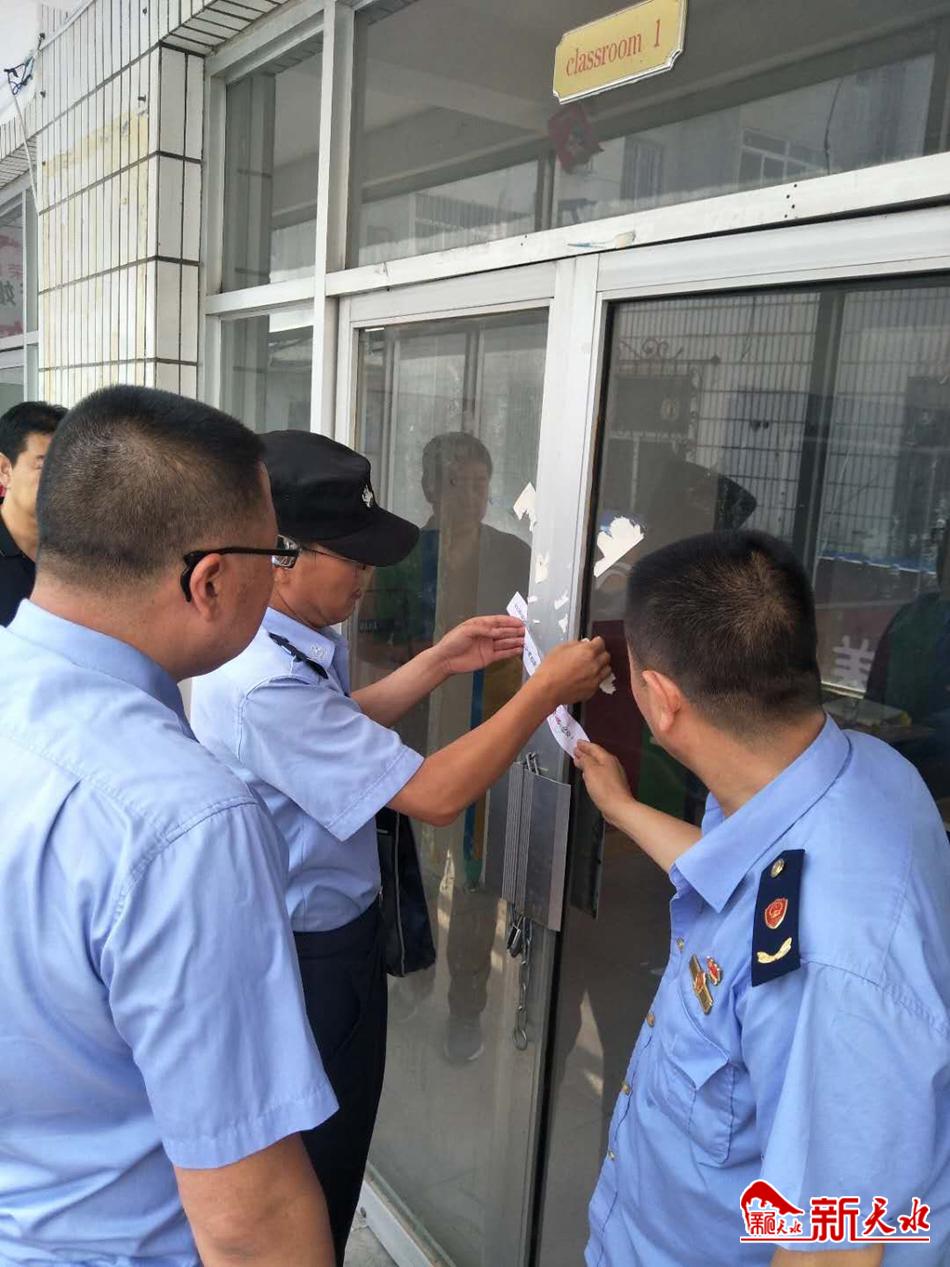 新天水讯 7月26日至30日,甘谷县教育局组织市场监管、民政、公安、应急、检察院等部门,联合治理校外培训机构,针对非法办学、违规招生、虚假宣传、安全隐患、失徳失范、超纲教学六大重点问题展开联合执法检查,对发现的违法违规校外训机构当场依法查封关停。