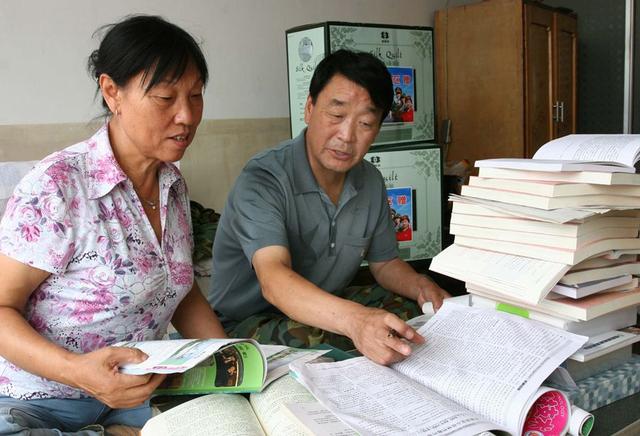 这是张连印和妻子一起查阅资料,学习植树造林和防风治沙知识(2007年9月1日摄)。新华社 刘松峰 摄