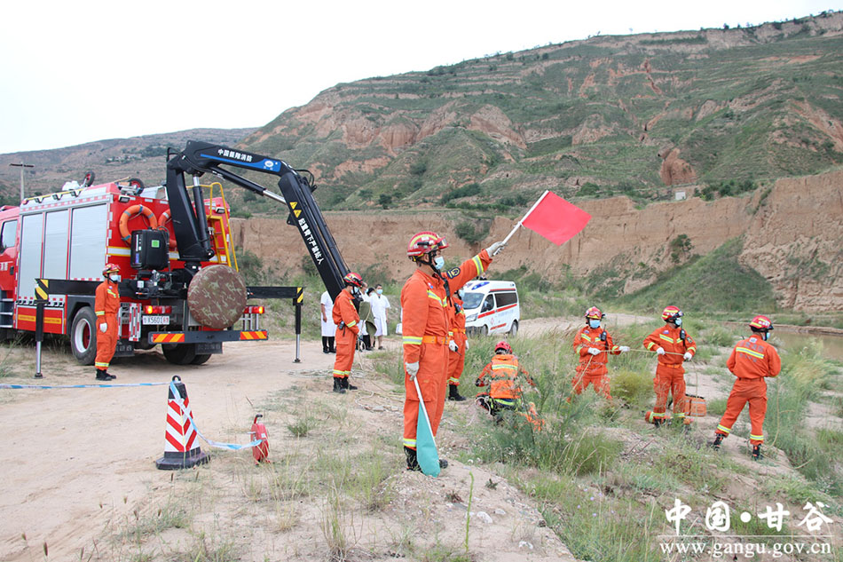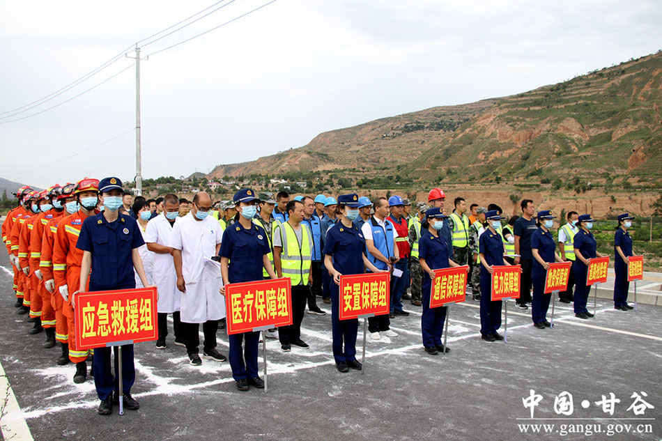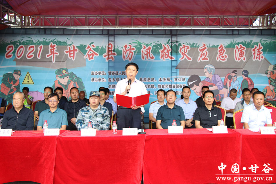 新天水讯 据甘谷县融媒体中心消息 为进一步增强广大干部群众的防汛救灾意识,切实提高防汛抢险应变能力,全面提升全县防汛抢险救援水平,8月4日,甘谷县开展2021年防汛救灾应急演练。县委常委、政法委书记马福胜,县委常委、人武部部长程满平,县人大常委会副主任陈旭,副县长,县公安局局长张涛出席演练活动。县应急管理局、水务局、自然资源局、交运局、气象局、卫健局、融媒体中心、粮食和物资储备局、消防队、供电公司、电信公司及15个乡镇相关人员参加演练。