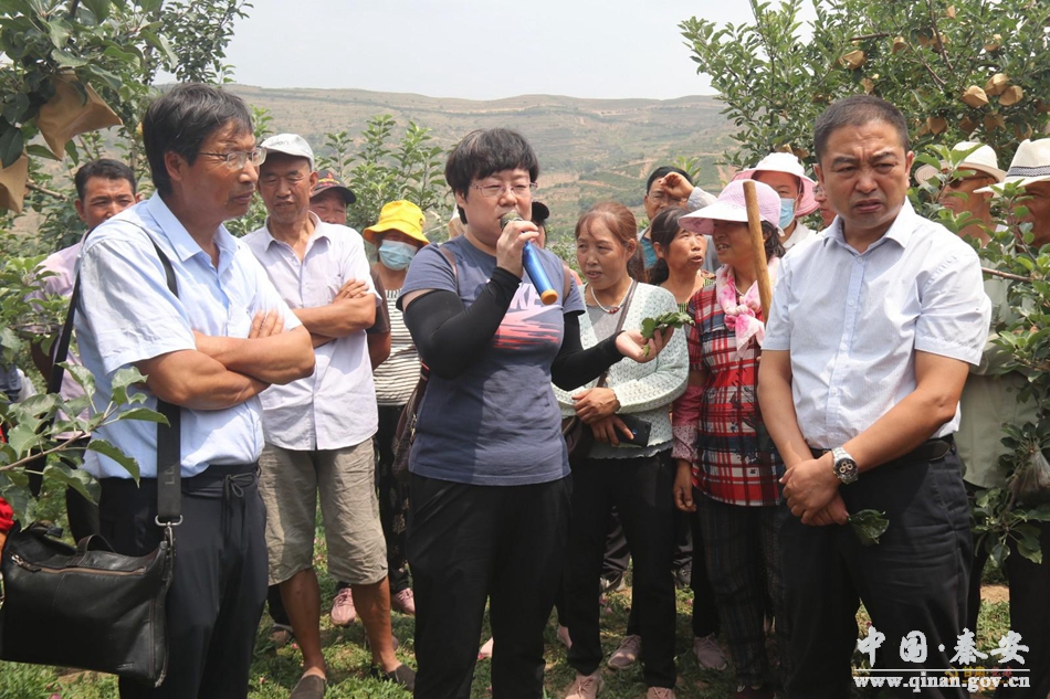 在西川镇李堡村苹果种植基地,专家们对苹果夏季果园管理、病虫害防治、土肥水管理等技术进行了详细讲解,并拿起剪刀,现场手把手教授果农夏季修剪技术。应专家提问,市级乡土人才安高翔介绍了基地在病虫害防治,特别是褐斑病、梨小食心虫防治方面的一些作法经验,专家团给予肯定,希望在今后的生产过程中大力推广监测预警、统防群治等技术,促进全镇苹果产业提质增效。
