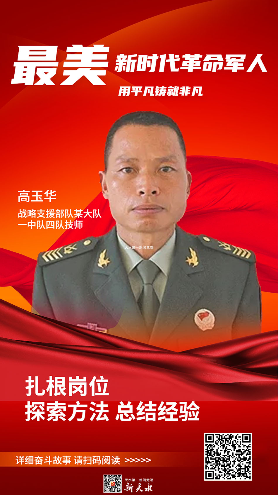 在中国人民解放军建军94周年之际,中央宣传部、中央军委政治工作部联合发布12位“最美新时代革命军人”。他们坚守初心使命、聚力强军打赢、勇于担当作为、永葆政治本色,在平凡岗位做出不平凡业绩,是新时代革命军人的突出代表,也是全军官兵学习的榜样,本期让我们一起关注战略支援部队某大队一中队四队技师高玉华。