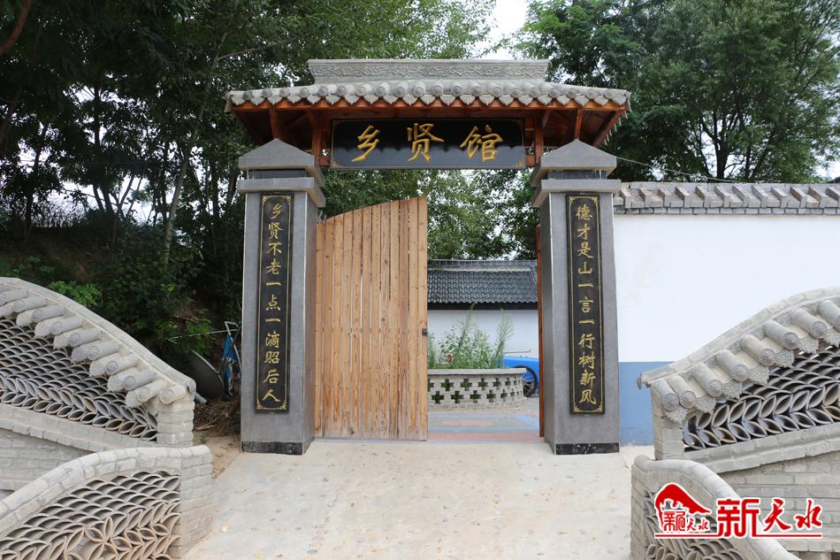 乡村记忆馆斜对面是一座古朴的建筑,建筑的门楣处写着烫金的“乡贤馆”三个大字。乡贤馆的门楹处有一副对联,上面写着:“德才是山一言一行树新风;乡贤不老一点一滴照后人。”