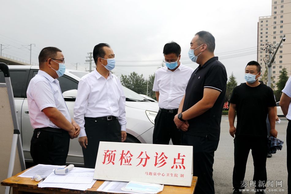 新天水讯 据麦积区融媒体中心消息 8月19日,市政协副主席、麦积区委书记成少平带领区直相关部门主要负责人督查疫情防控和疫苗接种工作。区委常委、宣传部部长王启峰,区委常委、马跑泉镇党委书记温建军一同督查。