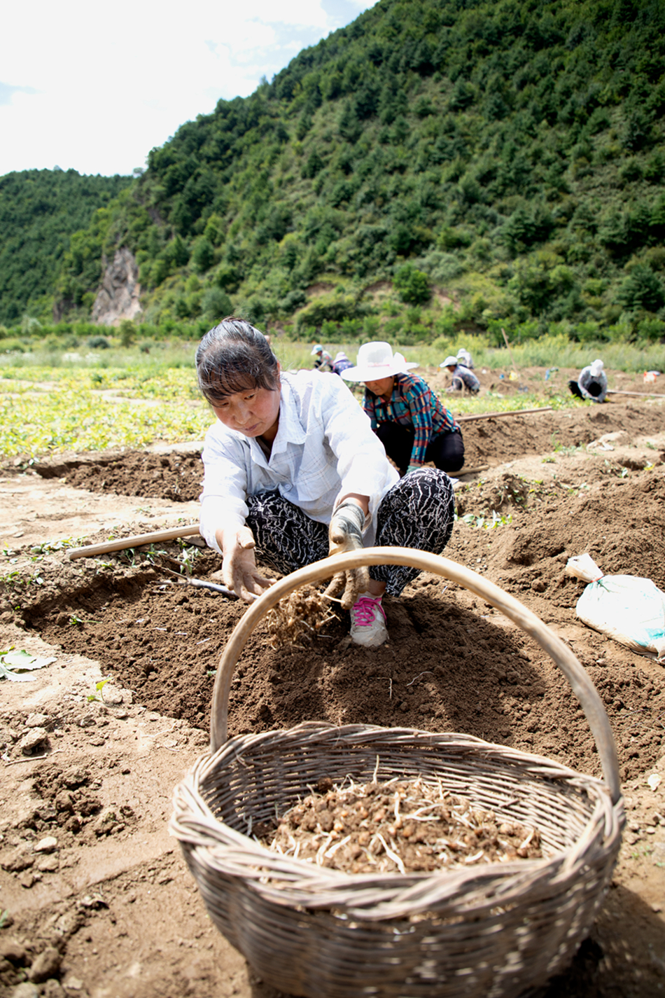 初秋8月,又到了半夏收获的季节,清水县河谷川塬地带,成熟的半夏陆续开始采收。在山门镇高桥村,半夏种植大户蔡会芳种植的13亩半夏基地里,四五十人在田间地头忙着采挖、筛选半夏,蓝天白云下,青山环绕间,一幅喜人的丰收图景。