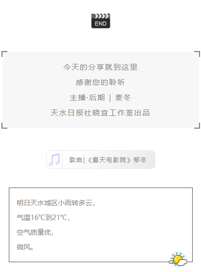 在这个微凉的雨天,我们即将告别八月,告别又一个夏天。夏日的喧闹和暑气一样,在初秋的雨中悄然沉寂。这个夏天终将成为生命中短暂的一瞬,在记忆中渐行渐远。然而有些东西,却任时过境迁,雨打风吹,始终在心房中散发着柔和的光,温暖着你,比如,夏夜里,那一场让你兴奋期待、而后又回味许久的露天电影,还有那斑驳的黑白光影中,你纯真的笑......今夜,请聆听令军信发表在《天水日报》大地湾文艺副刊上的文章《露天老电影》。