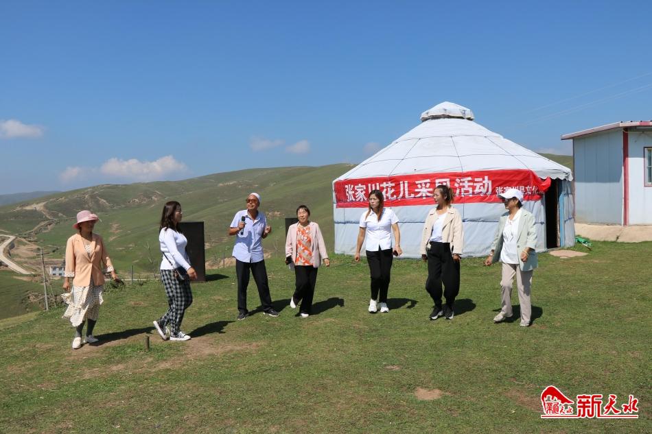 新天水讯【记者 刘蕾】为加强文旅融合,全面展示优秀的民俗文化,传承、保护国家级非遗项目——张家川花儿。8月29日,张家川县文化馆组织省级传承人杨国祥、市级传承人李万学、李虎娃、马林、马金蝉以及他们的徒弟一行20余人,前往平安草原风景区进行采风活动。