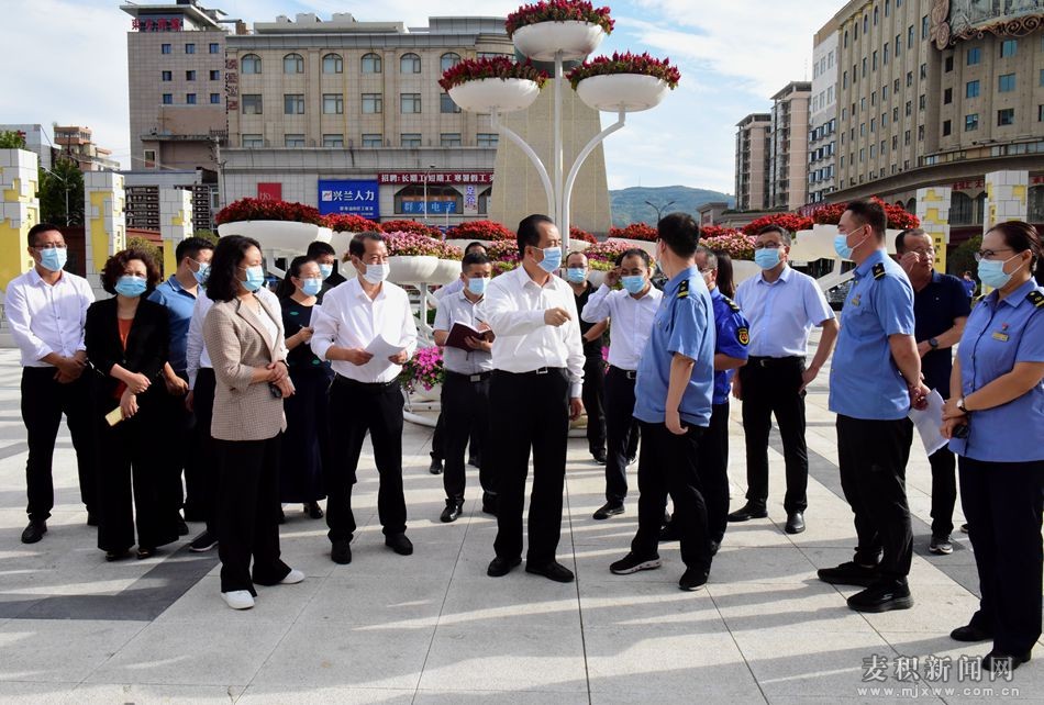 新天水讯 麦积区融媒体中心讯(记者 姚苗 王雯) 9月1日,天水市政协副主席、麦积区委书记成少平带领区直相关部门和街道主要负责人督查全国文明城市创建工作。区领导李春彦、杨彦芳、成红梅、周岳红、兰春梅一同督查。