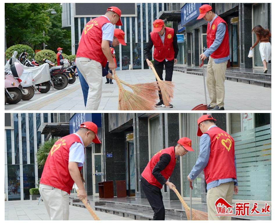 9月3日,天水市委组织部开展了创建全国文明城市“包街包巷包小区”志愿服务活动。志愿者身穿红马甲来到“包街”责任路段,清扫人行道路面、擦洗公共设施、清理沿街商铺外墙壁和玻璃门上的小广告,按照“卫生好、秩序好、设施好、市容好、宣传好、文明程度指数高”的“五好一高”要求,积极开展“包街”志愿服务活动。