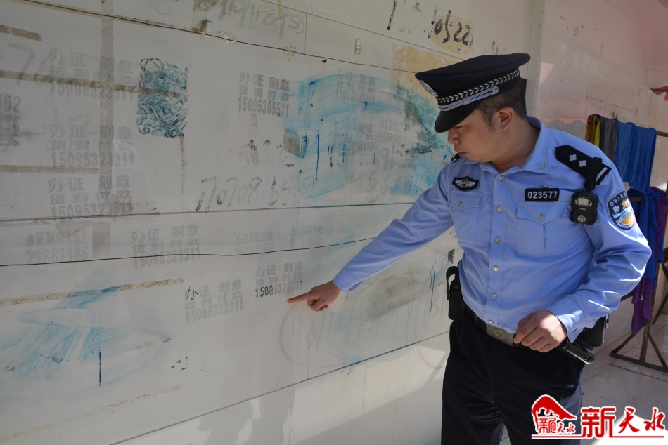 “发现有违法张贴或涂画的小广告以后,我们首先是拍照取证,后续还会对这些违法行为进行追踪侦办。”韩建辉说,派出所主要是街面巡逻和视频巡逻,巡逻中发现有小广告会取证查处,发现粘贴小广告的违法人员会按规定处置。另外,由于违法张贴、涂画的行为主要在半夜实施,派出所还加大了夜间巡逻力度,确保全天候、全方位整治。