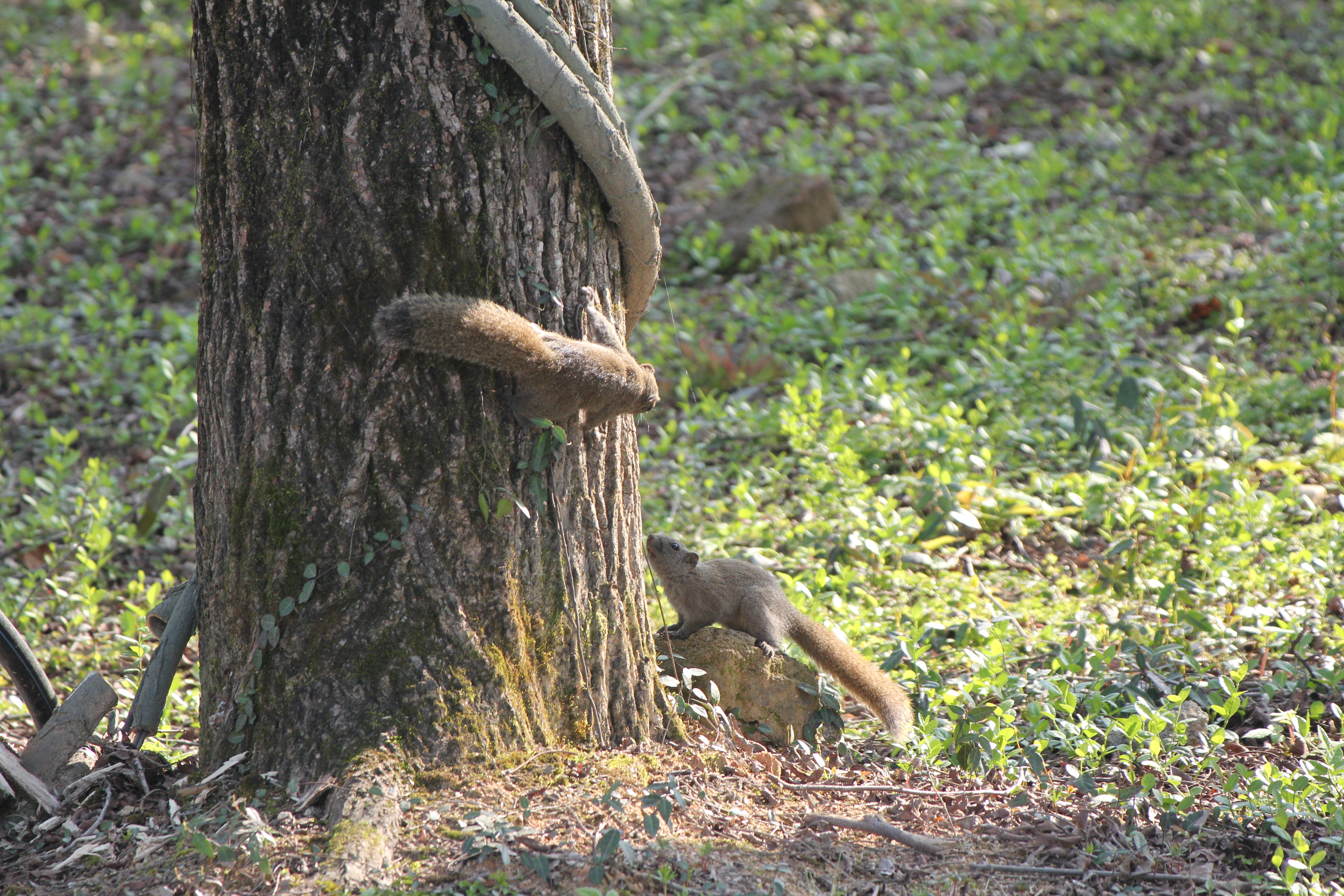 仰头观看松鼠的时候,一位村民走到我身边,“看什么呢?经常见你背着相机过来,你是记者吗?”