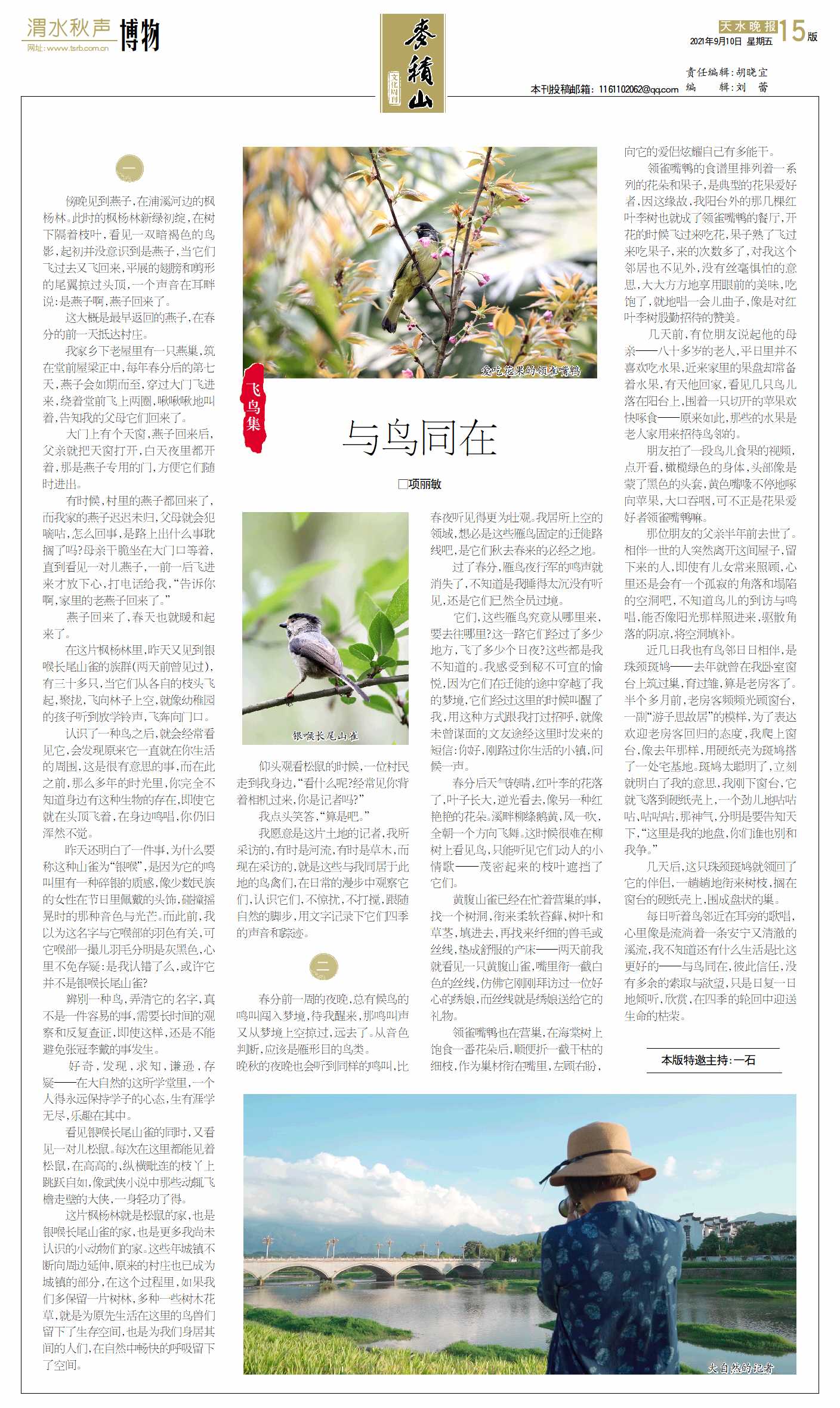 我愿意是这片土地的记者,我所采访的,有时是河流,有时是草木,而现在采访的,就是这些与我同居于此地的鸟禽们,在日常的漫步中观察它们,认识它们,不惊扰,不打搅,跟随自然的脚步,用文字记录下它们四季的声音和踪迹。