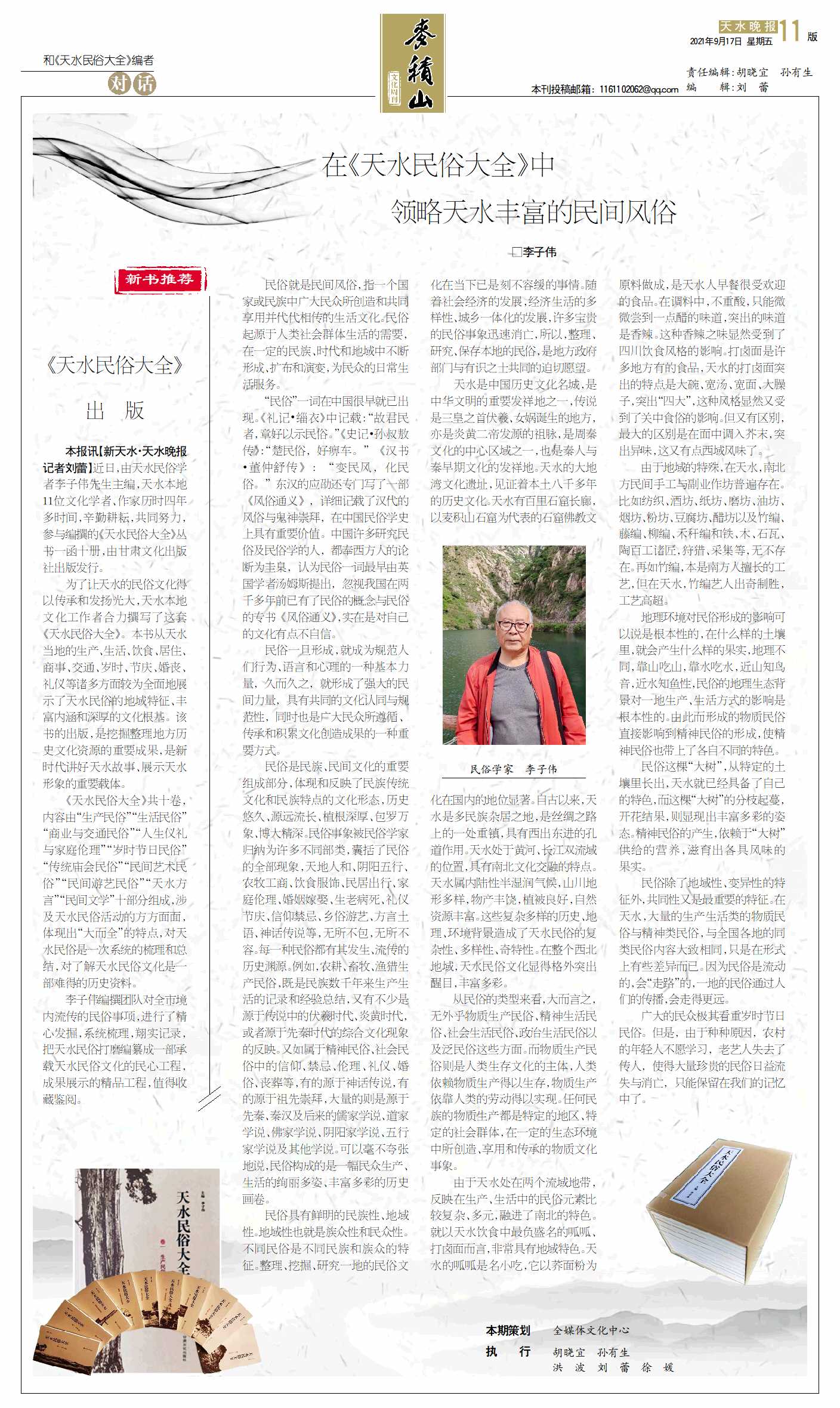 李子伟编撰团队对全市境内流传的民俗事项,进行了精心发掘,系统梳理,翔实记录,把天水民俗打磨编纂成一部承载天水民俗文化的民心工程,成果展示的精品工程,值得收藏鉴阅。