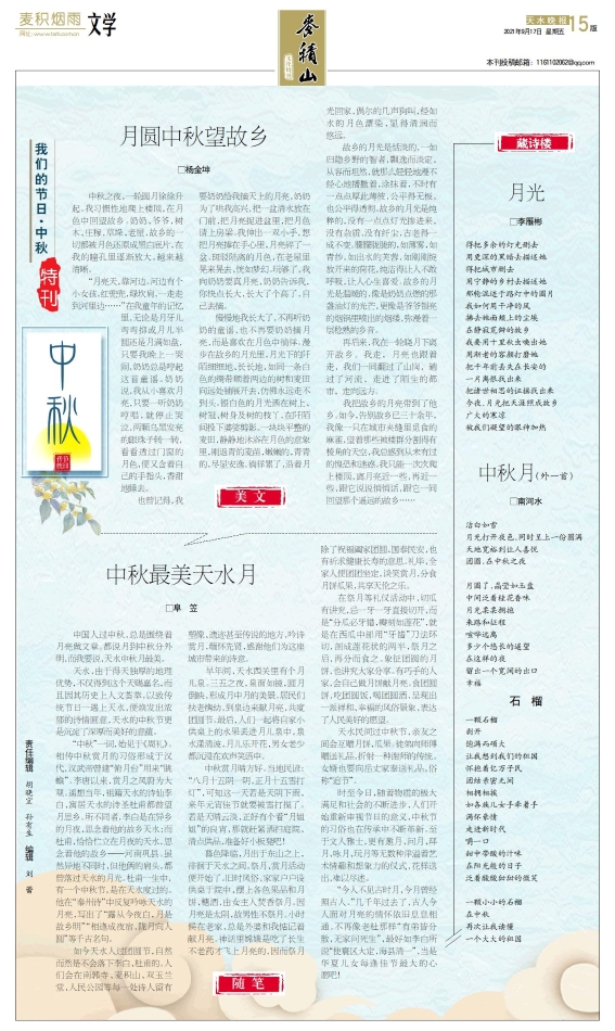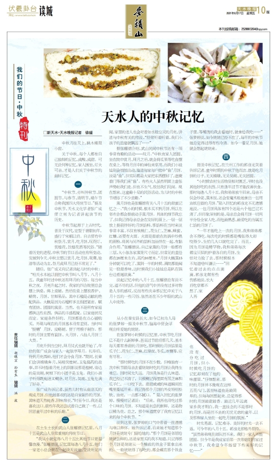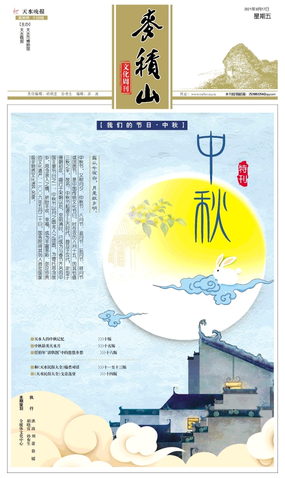 一年一度的中秋节即将到来,为唤醒更多人对传统文化的热爱,天水日报社全媒体文化中心特别推出专题策划:我们的节日·中秋