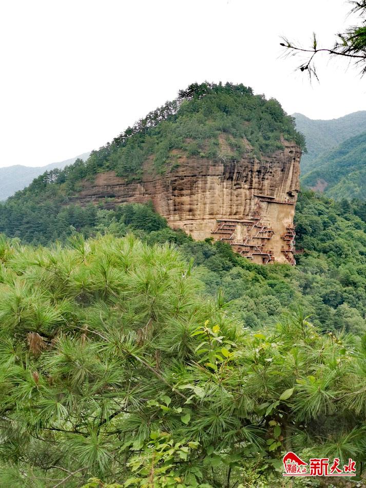 因新冠疫情,石窟暂时关闭,不过,管理者说过几天就开放了。我在万顷绿涛中犹如麦垛一样突兀而立的麦积山石窟身影下流连忘返。