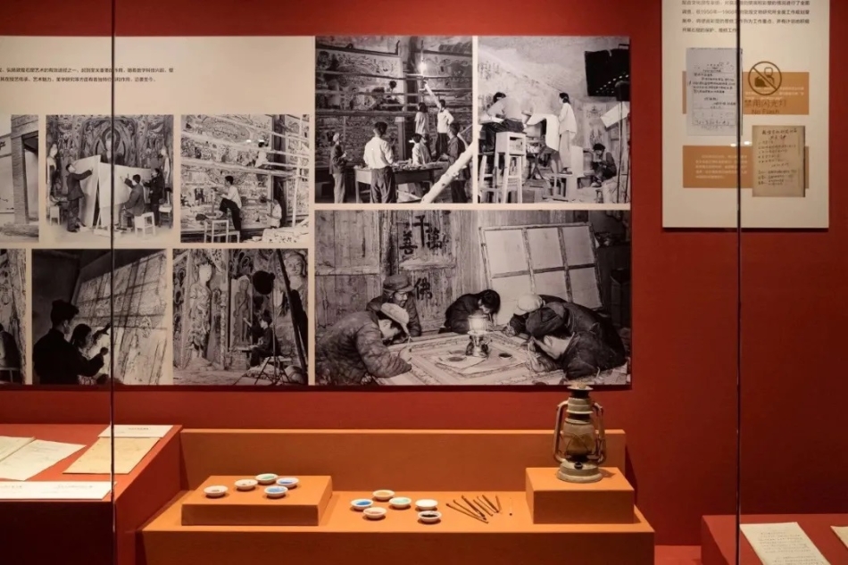 故宫博物院与敦煌研究院作为并蒂相契的文化守望者,共同见证了中国文物事业的不凡发展历程。展览第三单元“保护传承”,主要展现了新中国成立以来,在党和国家的领导与关怀下,故宫和敦煌文物事业从艰难起步到蓬勃发展,从筚路蓝缕到行稳致远,迈上了国际化、科学化、规范化发展轨道,走出了具有中国特色的文物保护利用之路。党和国家领导人心系敦煌与故宫,如春风化雨,激励着守护这两处伟大的人类文化遗产的一代又一代文物保护工作者不辱使命、薪火相传、砥砺前行,让古老的敦煌和故宫承载的中华优秀传统文化焕发出时代光芒。