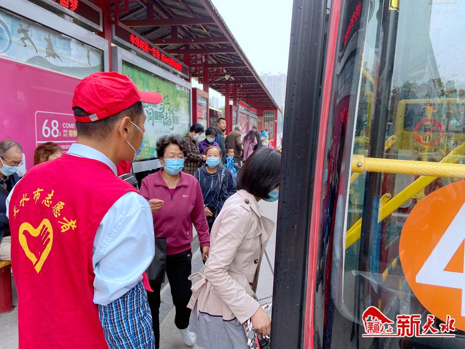 “乘客您好,请您排队候车,有序上下车。”赵伟是兰天站务段的站务员也是该区域的志愿者,疏导、引导乘客,为市民咨询指路、排忧解难,照顾老幼病残孕等特殊乘客安全上下车等等,他忙得不可开交,“能为创城尽一份自己的力量,我挺骄傲的。”