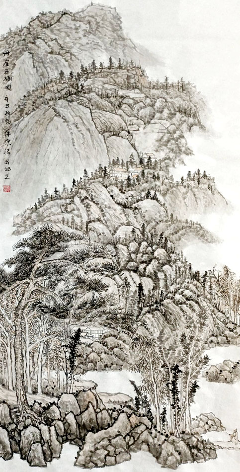 李宗泽国画作品|山河无恙•丹崖玉树图