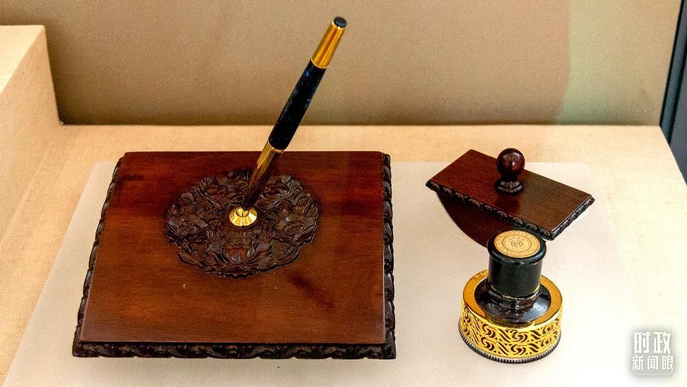 △这是在多哈会议上签署中国加入世贸组织法律文件时使用的文具。(图/视觉中国)