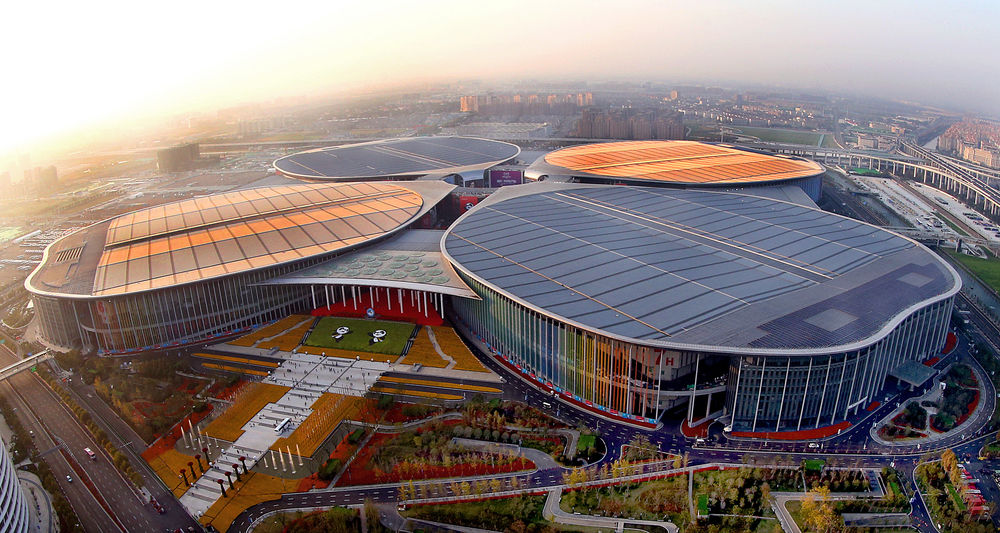 ↑2020年11月2日拍摄的上海国家会展中心南广场。