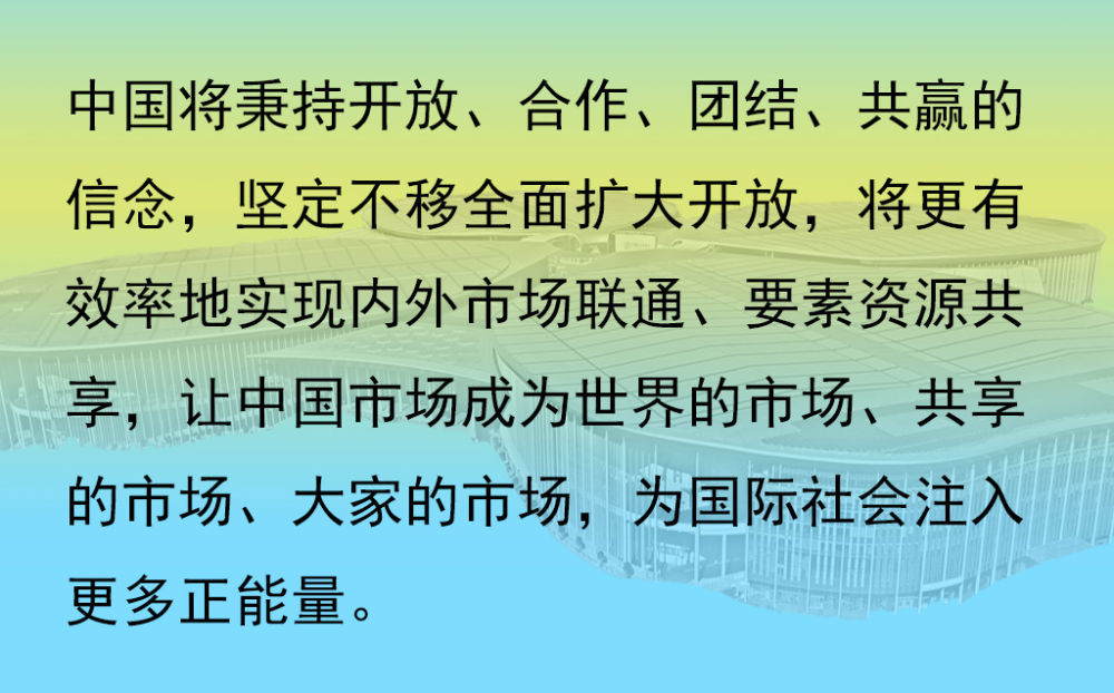 他强调,中国将坚定不移维护真正的多边主义,坚定不移同世界共享市场机遇,坚定不移推动高水平开放,坚定不移维护世界共同利益。