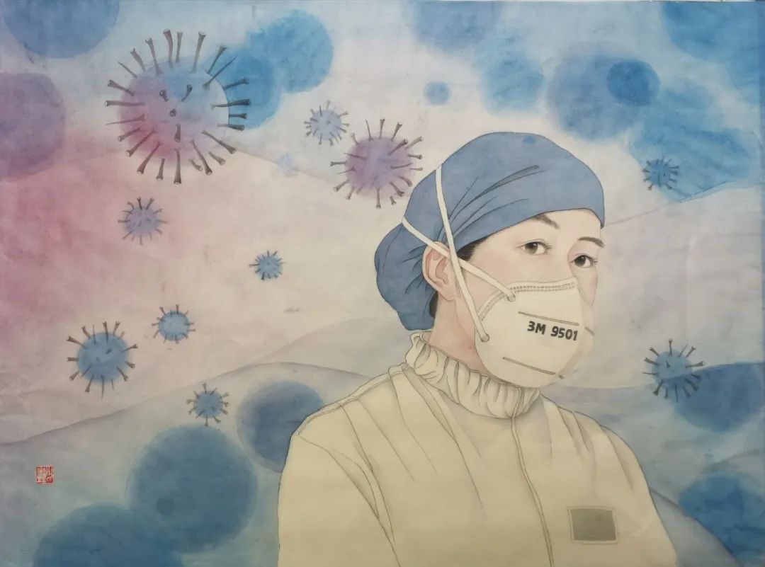 蓝口罩,白战衣
