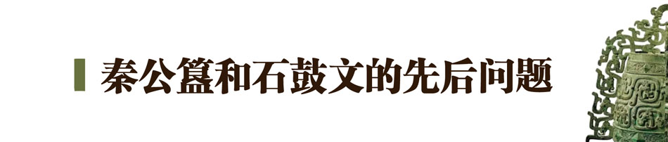 “秦公簋”可将器与铭合一来看,“石鼓”无文则器的意义大减,故笔者在行文中,“秦公簋”指器铭合一,“石鼓文”则指器文合一。