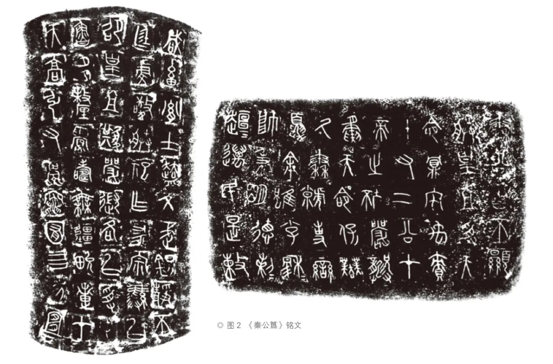 秦公簋和石鼓文,虽一铸一刻,但在中国文字和书法发展史上,颇有其典型意义存焉。