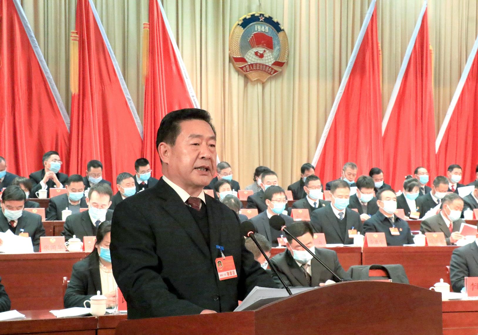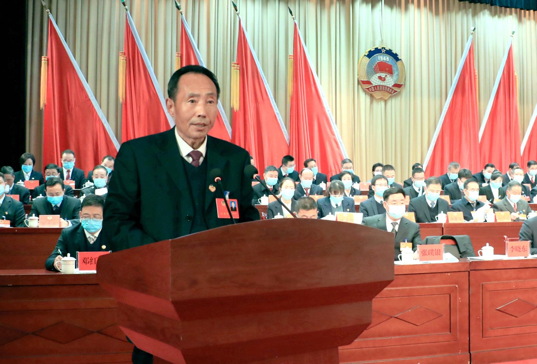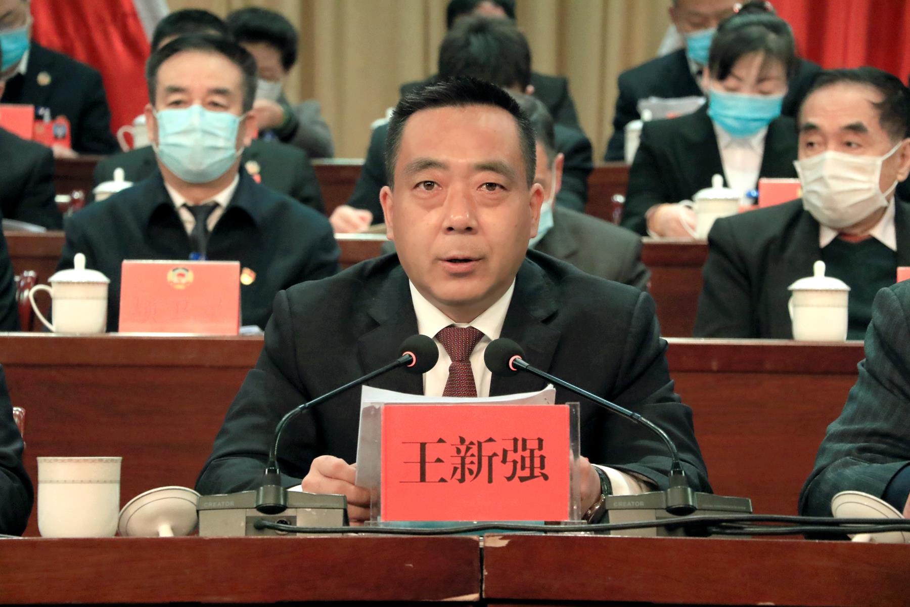 王新强说,过去的五年,是武山改革发展进程中极不平凡的五年。五年来,在市委、市政府坚强领导下,全县上下坚持以习近平新时代中国特色社会主义思想为指导,深入贯彻落实党的十九大和十九届二中、三中、四中、五中、六中全会精神,认真贯彻落实习近平总书记对甘肃重要讲话和指示精神,攻坚克难、砥砺奋进,圆满完成了县十四次党代会确定的目标任务,与全国全省全市同步全面建成小康社会,全县党的建设和各项事业取得了明显成效,为全面开启社会主义现代化建设新征程奠定了坚实基础。我们始终坚持以党的政治建设为统领,引导全县各级党组织和广大党员干部增强“四个意识”、坚定“四个自信”、做到“两个维护”,始终在思想上、政治上、行动上同以习近平同志为核心的党中央保持高度一致。我们始终坚持把脱贫攻坚作为首要政治任务和第一民生工程,全县党员干部群众尽锐出战、集中攻坚,2018年底率先在全市实现整县脱贫摘帽,2020年底12.2万建档立卡贫困人口全部脱贫,历史性解决了绝对贫困问题,交出了一份无愧于党、无愧于人民、无愧于时代的优异答卷。我们始终坚持稳中求进工作总基调,加快经济结构调整和产业转型升级步伐,唐人神集团生猪绿色全产业链等现代农业项目全面建成,祁连山水泥等工业企业产销两旺,国家级洛门蔬菜批发市场迁建、5万吨冷链物流等一批重点商贸项目建成运营,县域经济发展迈出新步伐。我们始终坚持实施项目带动战略,精心谋划实施了一批重点项目,国道310线升级改造、人民广场、体育馆、热源厂、第二水源地、洛门渭河大桥拆除重建等项目建成使用,引洮供水二期配套城乡供水工程、周庄渭河大桥等项目加快建设,城乡基础条件明显改善,发展后劲持续增强。我们始终坚持绿水青山就是金山银山理念,以前所未有的力度抓生态文明建设,加强渭河流域生态保护和治理,全面落实河(湖)长制,严厉打击各类环境违法行为,坚决打好污染防治攻坚战,美丽武山建设迈出新步伐。我们始终坚持以人民为中心的发展思想,持续加大民生投入力度,优先发展教育事业,健全公共卫生服务体系,县一中、县医院迁建等重点民生项目即将建成投用;织牢织密社会保障网络,有效解决了一些事关群众切身利益的“急难愁盼”问题,社会大局和谐稳定,人民群众获得感和幸福感不断增强。