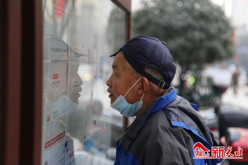于是,每天在藉河边锻炼完身体,王文生都会在上午10点半准时出现在阅报栏前。12月8日,当记者见到王文生时,他正弓着腰探着脖子,隔着玻璃认真地读报纸里面的文字。“我自己订的报纸送到手里比较迟,我等不及就先到阅报栏一睹为快喽。”王文生笑着说。