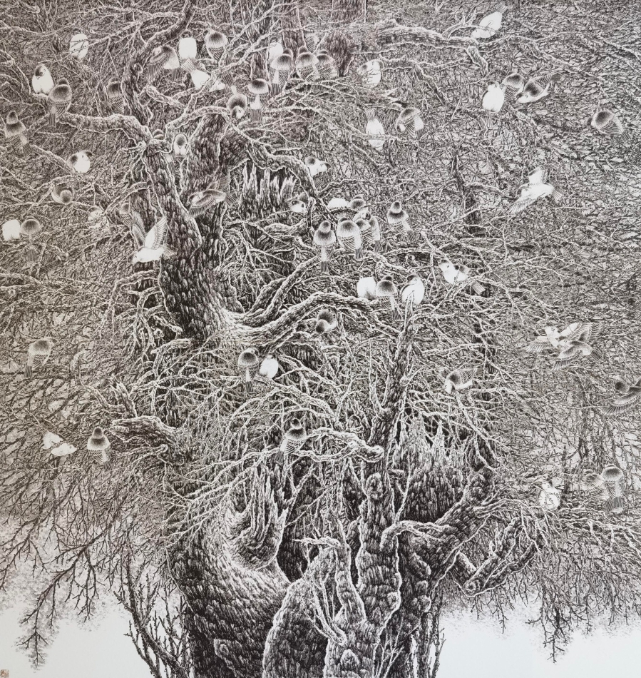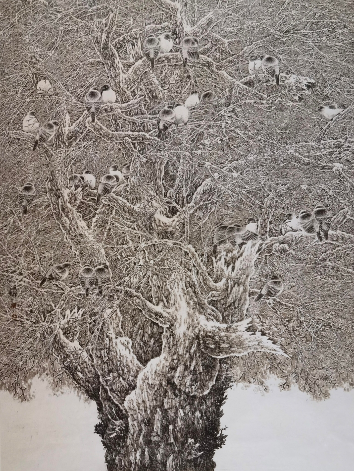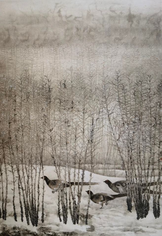 《寒林归禽》(180cm×220cm)