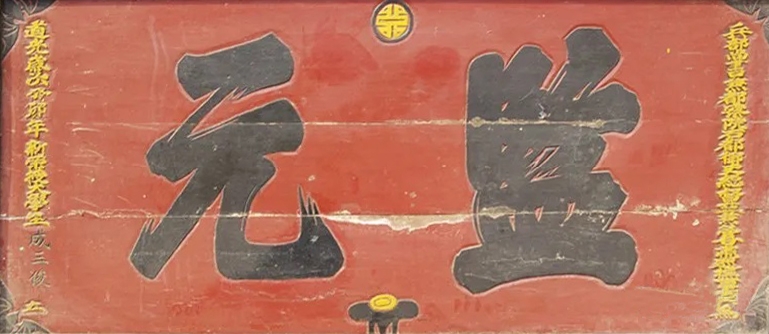 “监元”牌匾,兵部尚书某(待考)题,道光年间,有一回,在北京国子监举行的一次内部考试中,一位叫成三俊的学生考了第一名。兵部尚书(另兼数职,皆要职)题写了这两个字,成三俊回家,再制成了匾,悬挂起来,相当于一个“大奖状”。这样的“大奖状”可以世世代代悬挂下去。