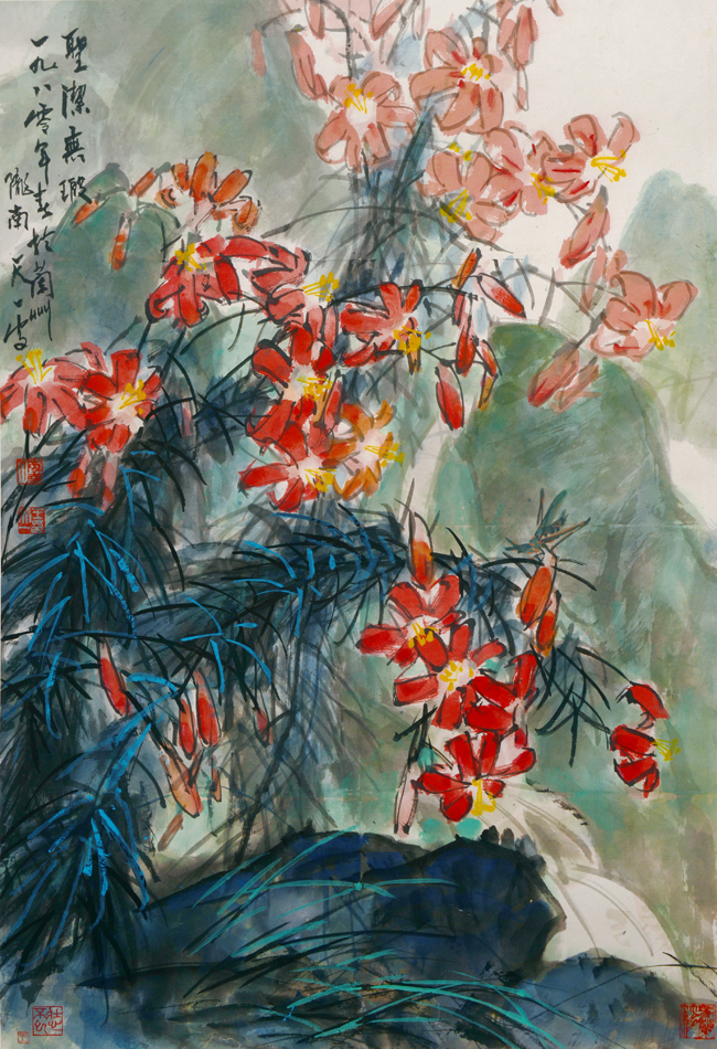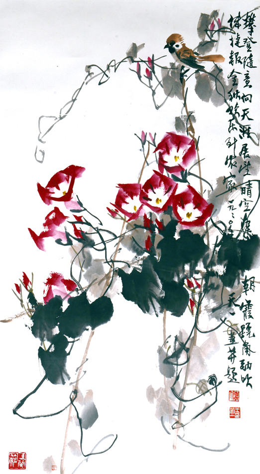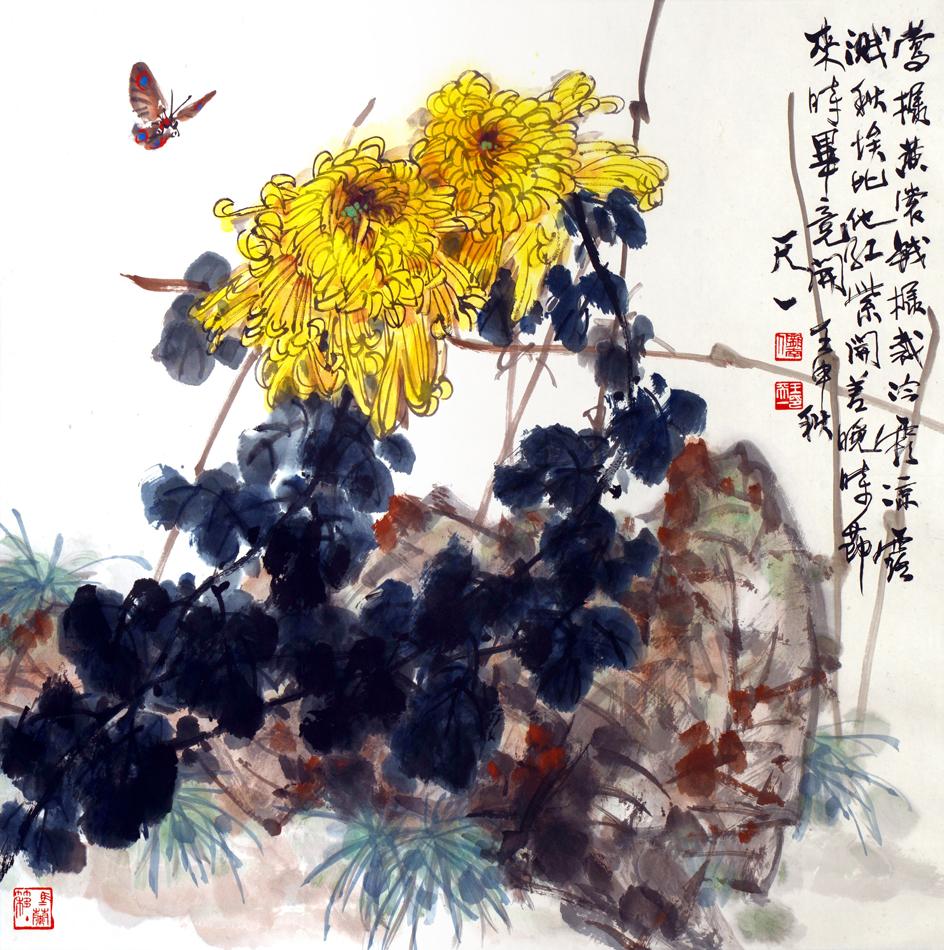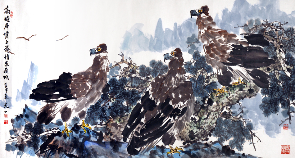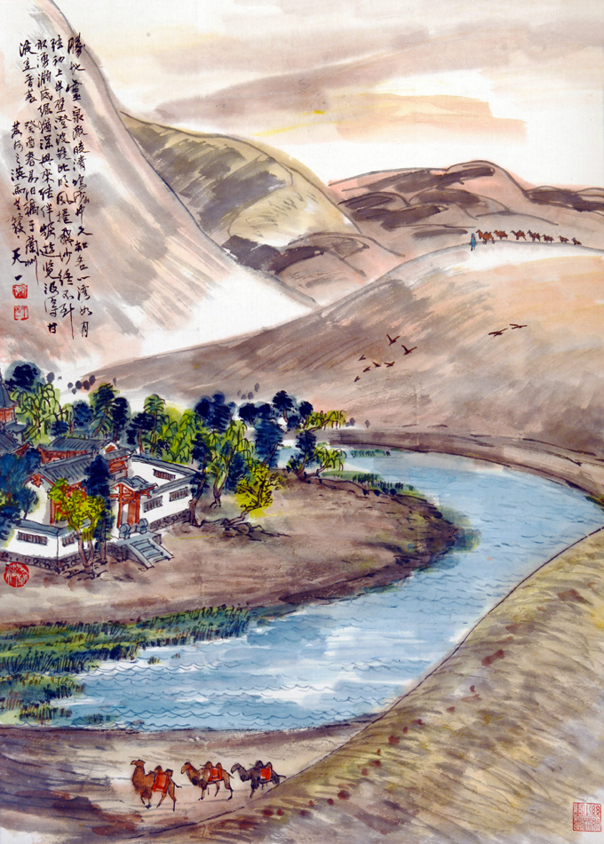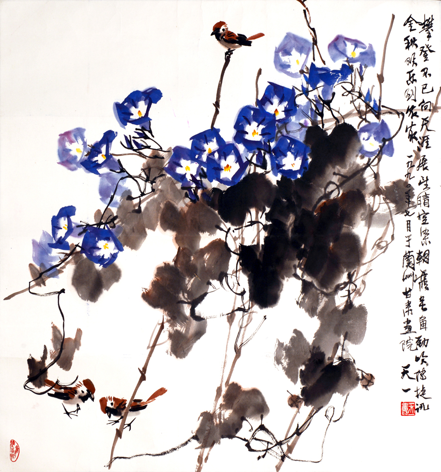 王天一(1926年—2013年),甘肃成县人,中国美术家协会会员,曾就职甘肃省博物馆。其擅花鸟,亦写人物、山水。画风率意、潇洒而严谨,在严谨中求自由,在规矩中求突破。王天一致力于中国花鸟画创新,开拓花鸟画题材新范畴,作品笔墨酣畅、挥洒自如,形成鲜明的个人风格。其一生出版著作颇丰,有《花鸟画技法浅说》《王天一花鸟画集》《中国当代名家画集——王天一》等三十余种。晚年,还创作诗意画《杜甫在陇右》。