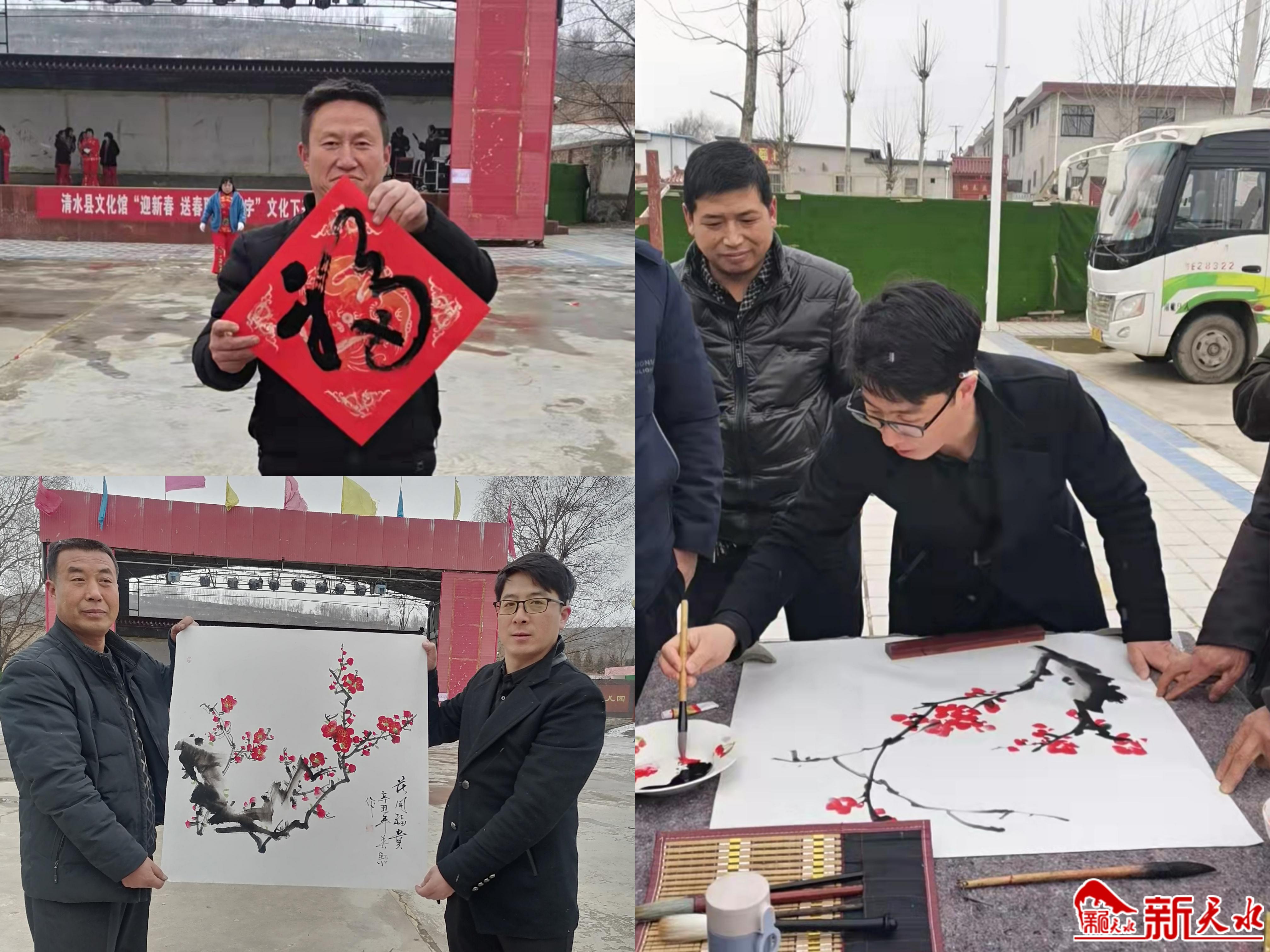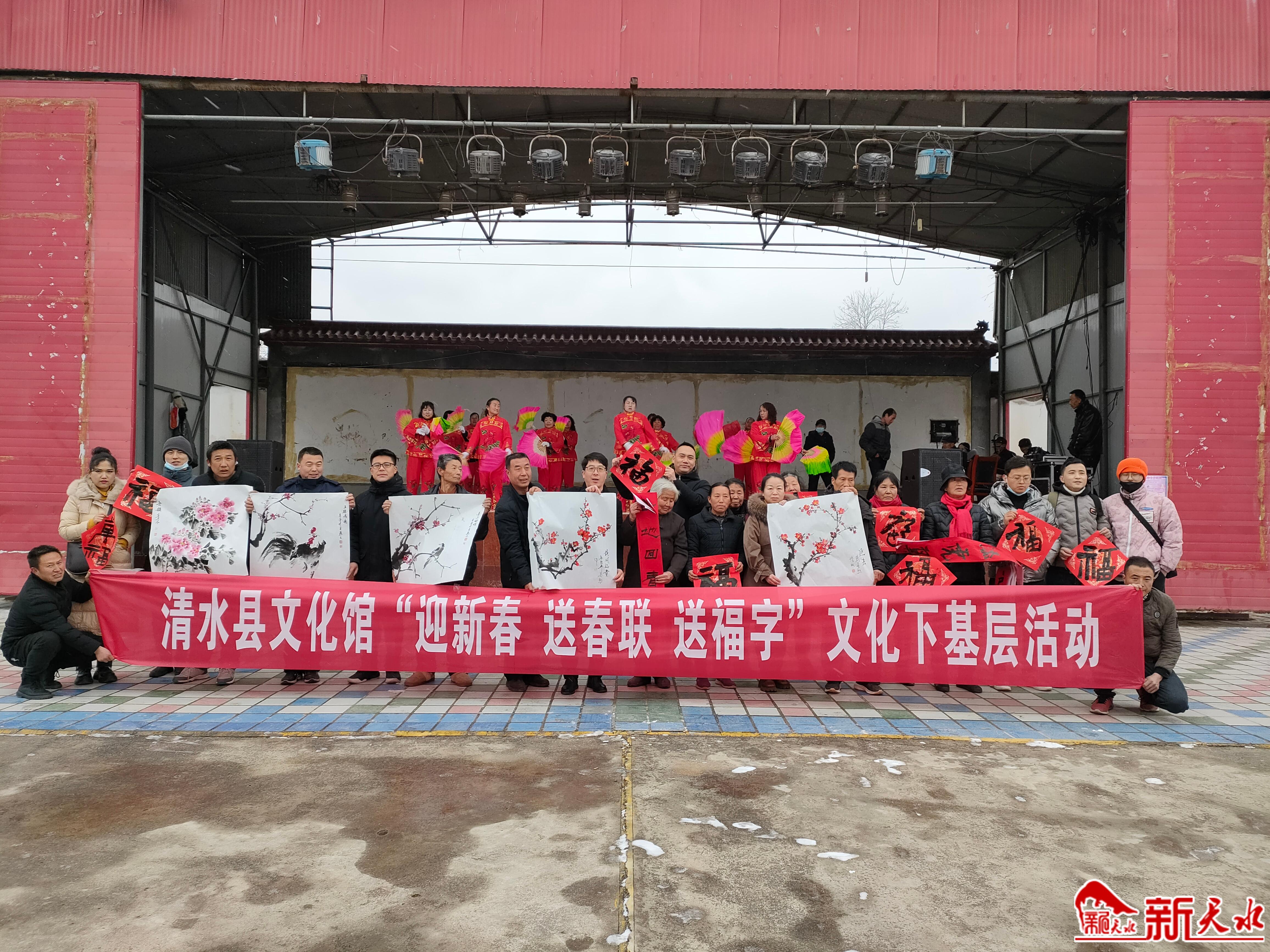 新天水讯【记者刘蕾】在新春佳节到来之际,为了进一步丰富广大人民群众的精神文化生活,营造欢乐祥和喜庆的节日氛围,让群众享受到传统文化带来的节日欢乐,1月25日下午,清水县文化馆组织书画爱好者来到永清镇温沟村开展“迎新春 送春联 送福字”文化下基层活动。