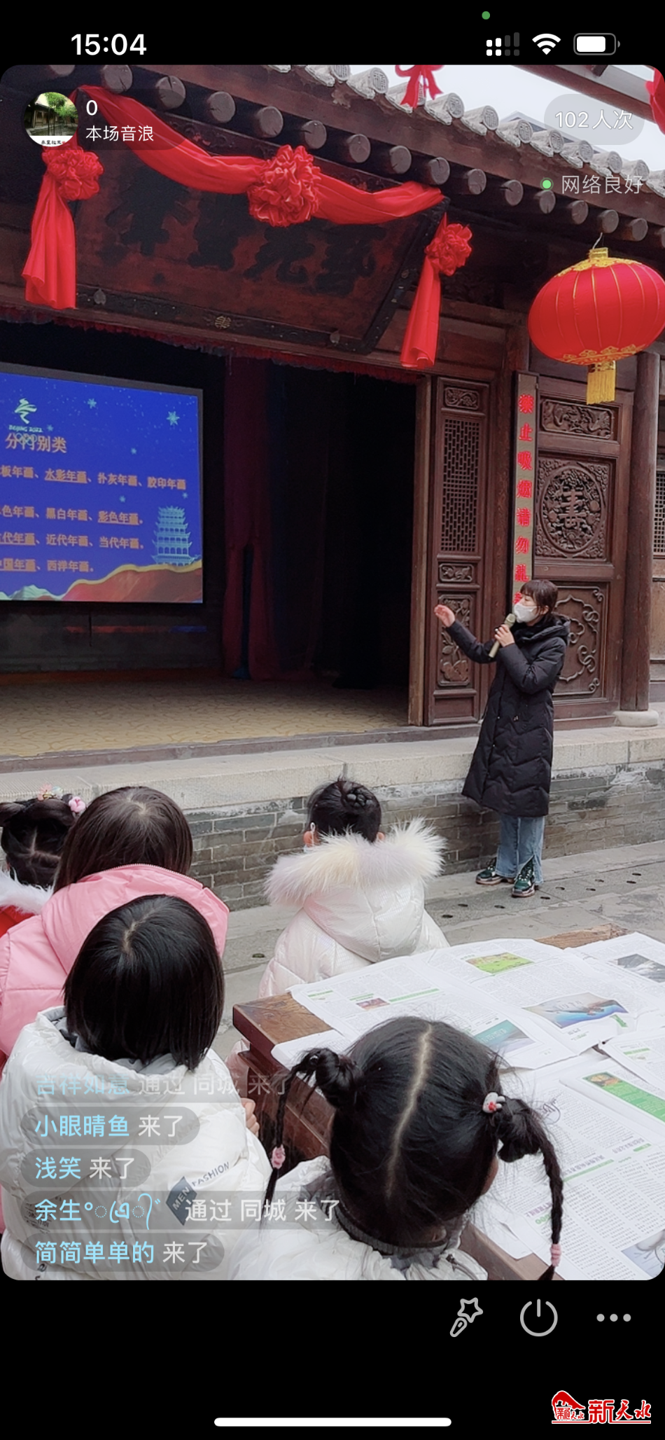 这次手工制作年画,不仅培养了小朋友的动手能力,同时也增进了父母和孩子之间的感情。线上的小朋友们也积极展示着自己的作品,线上线下一片热闹场景,尽管是飘着雪花的零下天气,但是现场气氛温馨,参观的游客也特意停留下来,观看孩子们一起绘年画。
