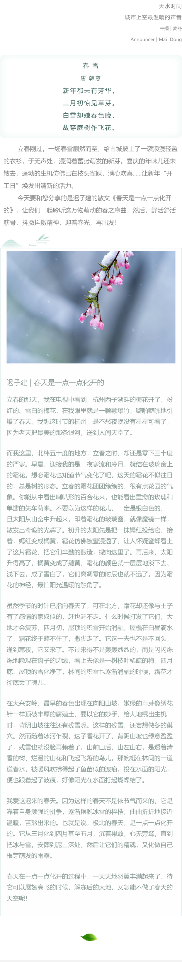 天水时间 | 春天是一点一点化开的