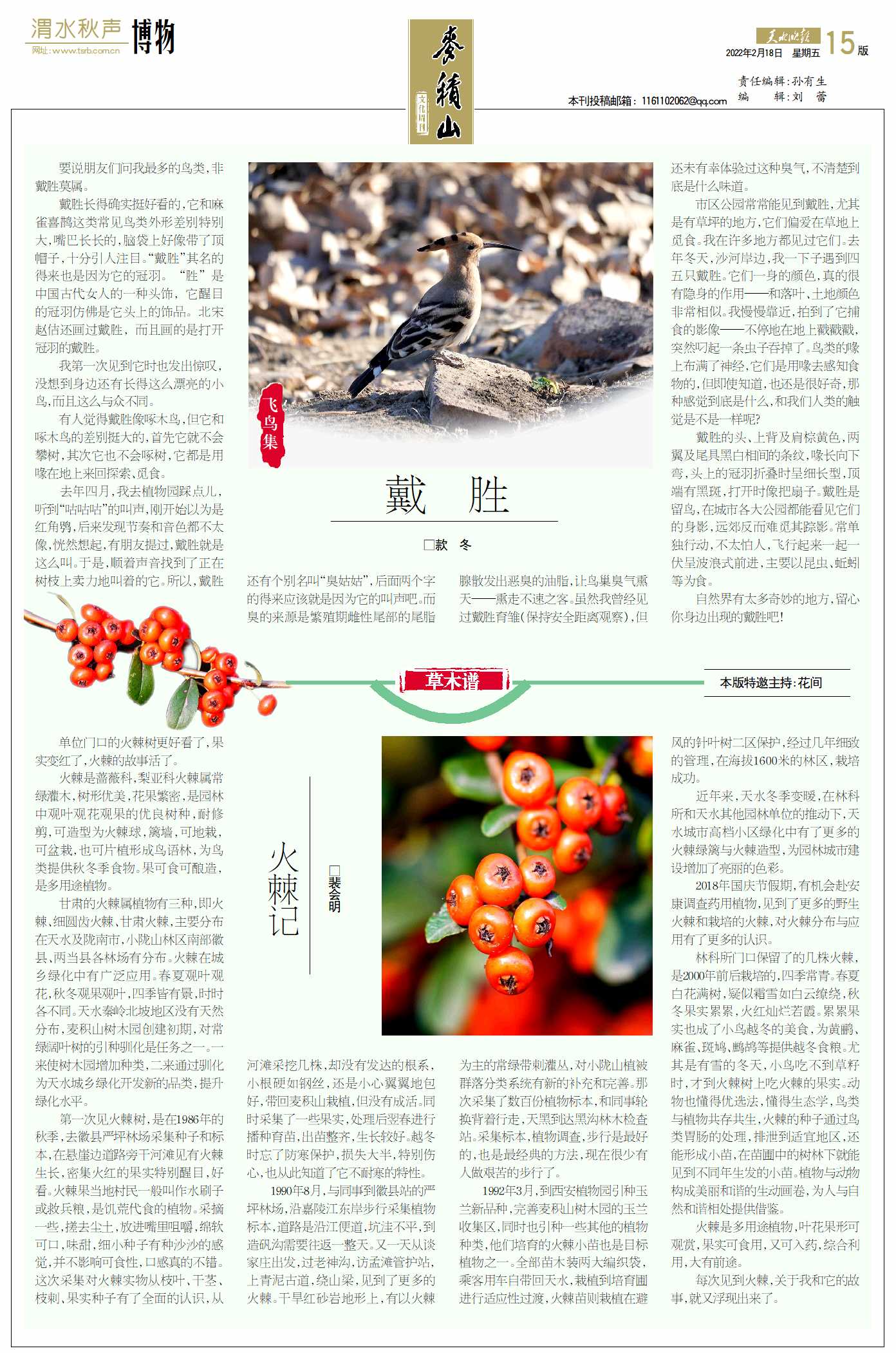 林科所门口保留了的几株火棘,是2000年前后栽培的,四季常青。春夏白花满树,疑似霜雪如白云缭绕,秋冬果实累累,火红灿烂若霞。累累果实也成了小鸟越冬的美食,为黄鹂、麻雀、斑鸠、鹧鸪等提供越冬食粮。尤其是有雪的冬天,小鸟吃不到草籽时,才到火棘树上吃火棘的果实。动物也懂得优选法,懂得生态学,鸟类与植物共存共生,火棘的种子通过鸟类胃肠的处理,排泄到适宜地区,还能形成小苗,在苗圃中的树林下就能见到不同年生发的小苗。植物与动物构成美丽和谐的生动画卷,为人与自然和谐相处提供借鉴。