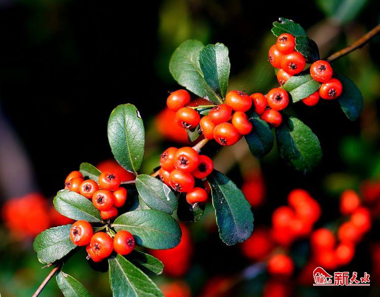单位门口的火棘树更好看了,果实变红了,火棘的故事活了。