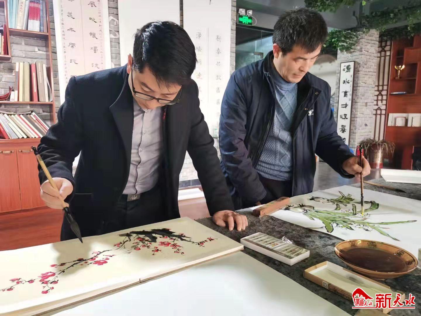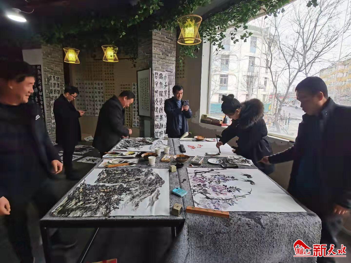 活动中,受邀的书画家相互切磋交流心得,取长补短,互勉互励,以书画会友,交流履职经验和创作体会,书画室里充满了喜悦、祥和、浓厚的文化氛围。