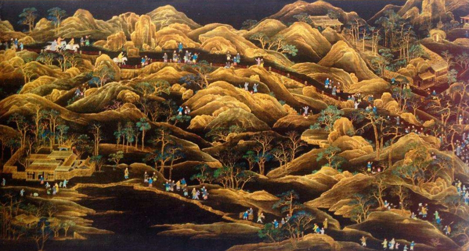 到了清末民初,末代皇帝溥仪在天津居住期间,为了维持日常开销,便将从皇宫中偷出来的书画出售,其中就包括这幅《万笏朝天图》,直到1958年,这幅精美的金碧山水画才辗转入藏在天津博物馆,呈现在世人面前。