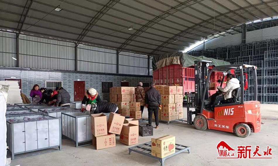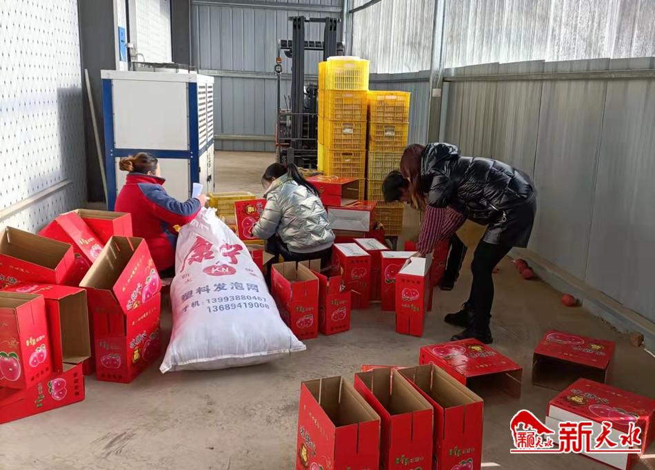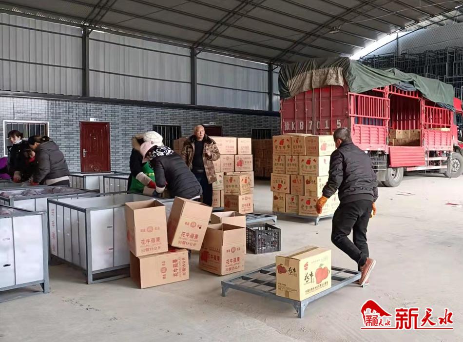 2月25日,清水县丰望乡付崖村的苹果冷库内,工人们正在分装富士和花牛苹果。据丰望乡人大主席姚小伟介绍,春节过后苹果市场回暖明显,花牛苹果价格涨幅较大,目前出库价已达每斤3.8元,且供不应求。新天水记者何慧娟 摄